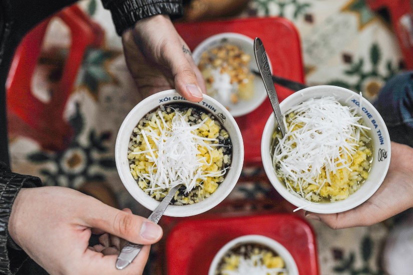 Quando a Hanoi si parla di xôi chè, Bà Thìn è solitamente il primo nome che viene in mente. Il negozio ha iniziato l'attività negli anni '30 come piccolo venditore ambulante e successivamente si è trasferito nel Quartiere Vecchio. È uno dei posti più antichi della città per lo xôi chè e mantiene ancora il gusto tradizionale.