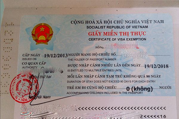 Coloro che entrano in Vietnam con l'esenzione riceveranno il timbro di esenzione sul passaporto come segue.