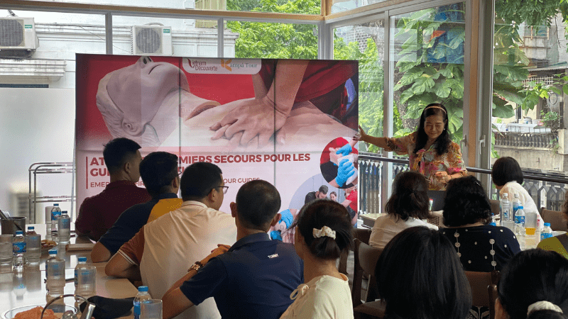 Consapevoli dell'importanza del primo soccorso, abbiamo organizzato un workshop dedicato alle nostre guide turistiche. Questo workshop ha coperto competenze vitali come la rianimazione cardiopolmonare (RCP), il trattamento delle fratture e la gestione dell'ostruzione delle vie aeree. I partecipanti si sono impegnati in simulazioni ed esercizi di role-playing, affrontando la formazione con grande serietà.
