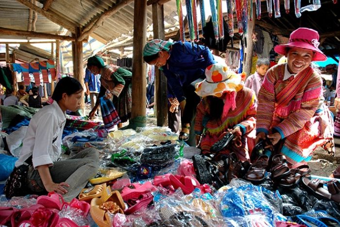 Le donne portano i loro prodotti in grandi cesti intrecciati legati sulle spalle mentre negoziano sui prezzi. Il mercato offre uno spunto sulla vita reale delle comunità etniche che abitano la zona, in particolare gli Hmong Bianchi. I visitatori possono facilmente navigare tra le bancarelle di tessuti, frutta fresca e altri venditori grazie all'architettura compatta e aperta dello spazio.